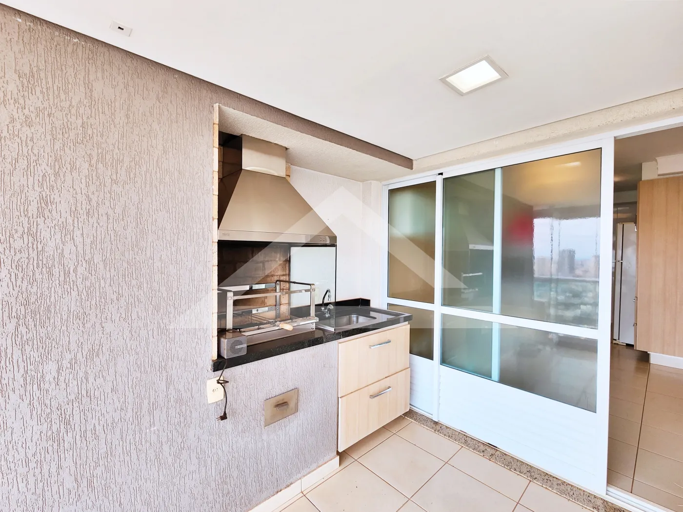 - Varanda gourmet com churrasqueira e fechamento em blindex
