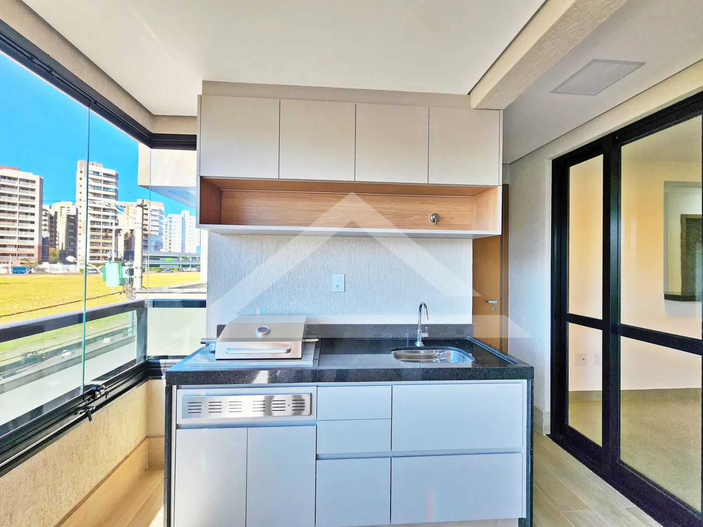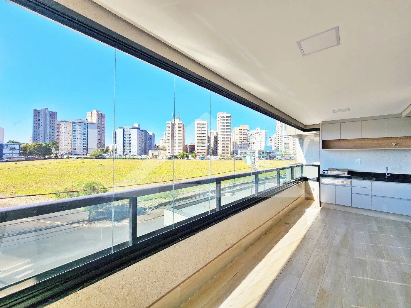 - Varanda gourmet com churrasqueira e fechada com blindex
