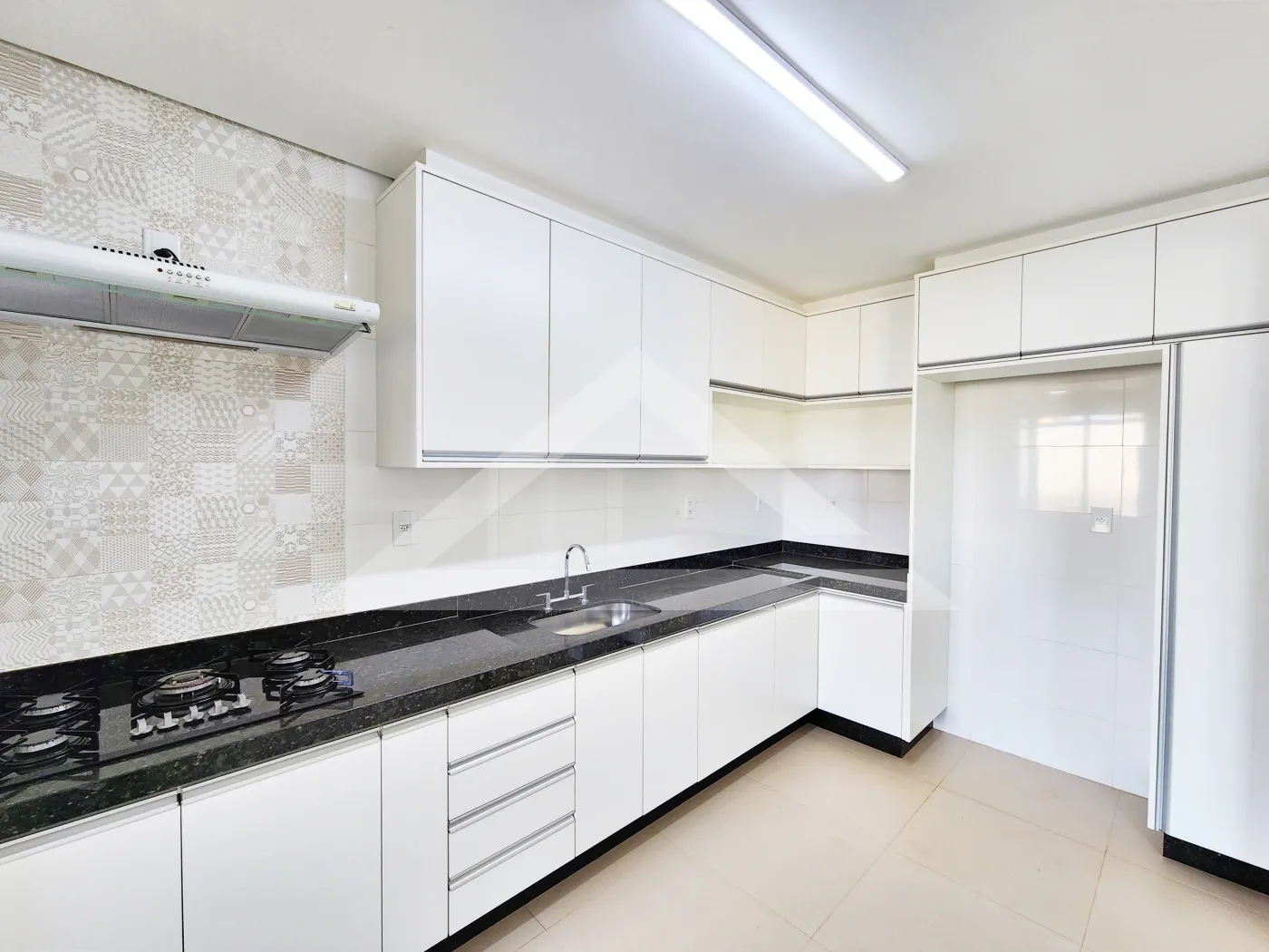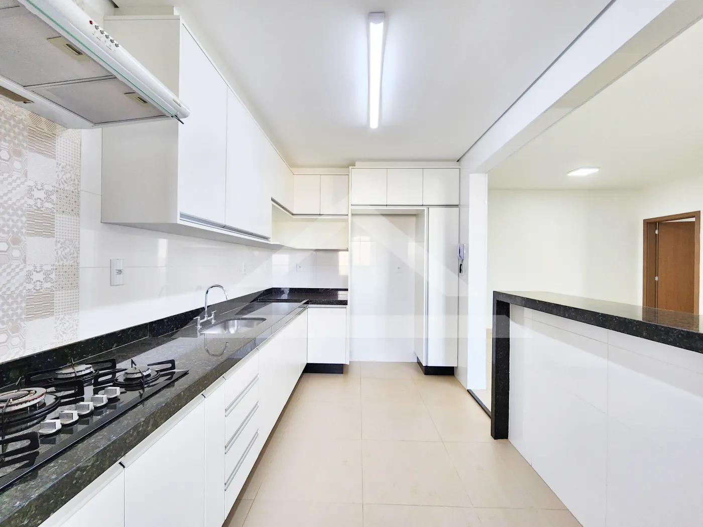 - Cozinha planejada com cooktop e coifa