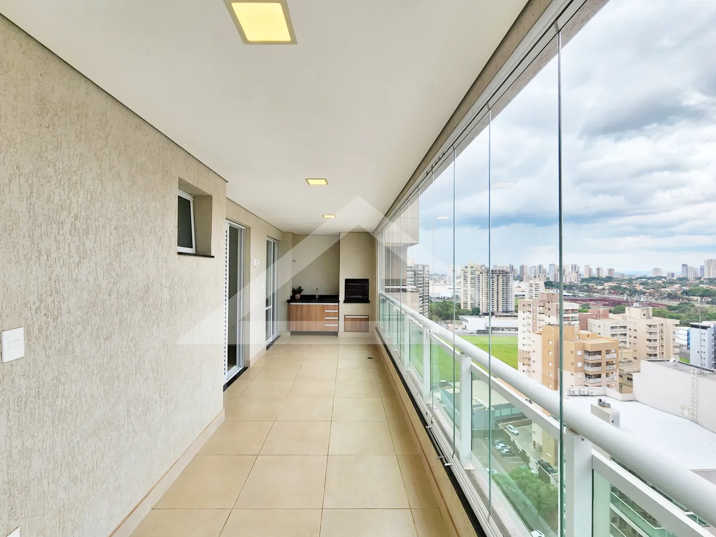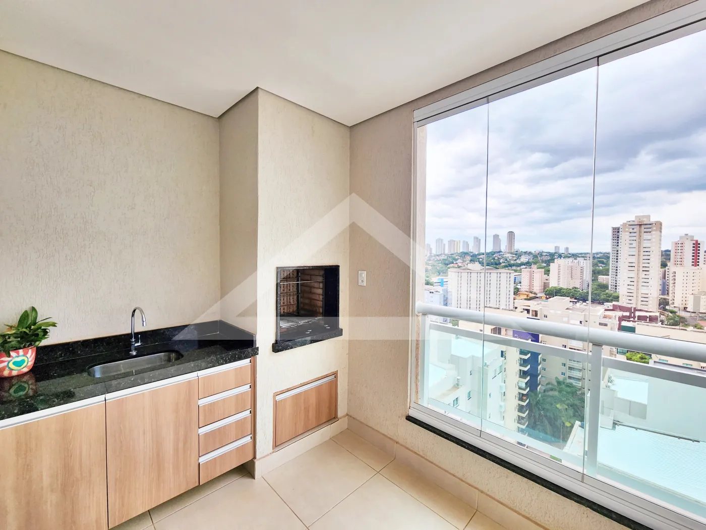 - Varanda gourmet com churrasqueira e fechamento em blindex