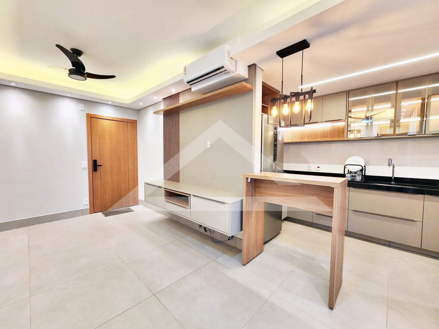 - Sala 2 ambientes com painel de TV e ar-condicionado