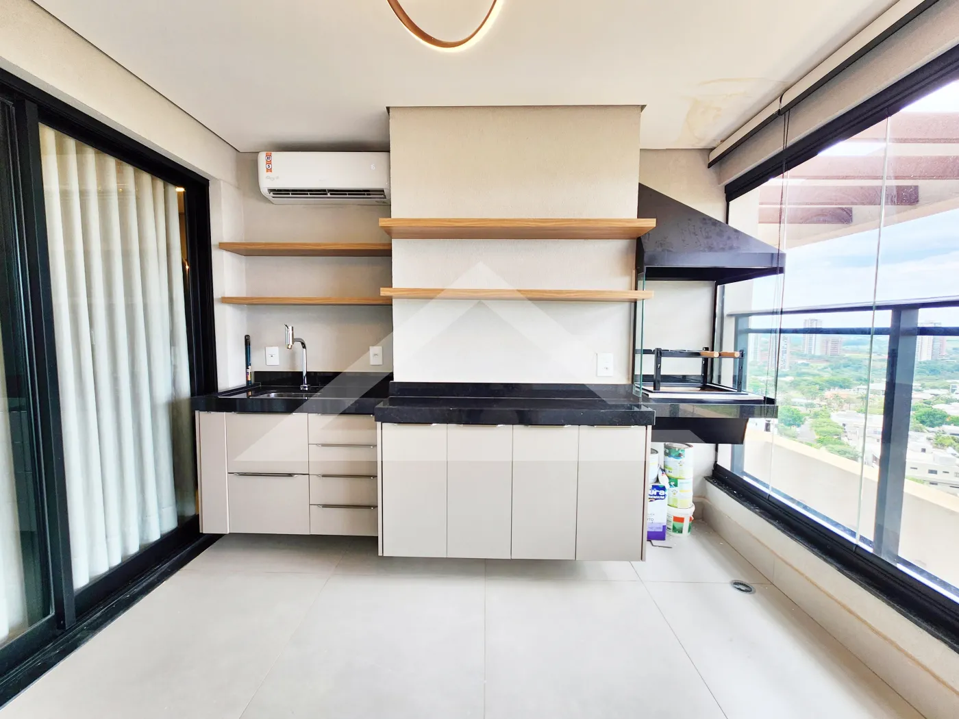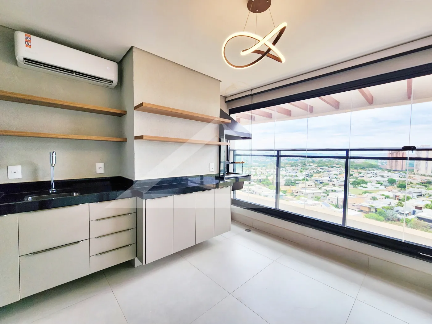 - Varanda gourmet com churrasqueira, ar-condicionado e fechamento em blindex