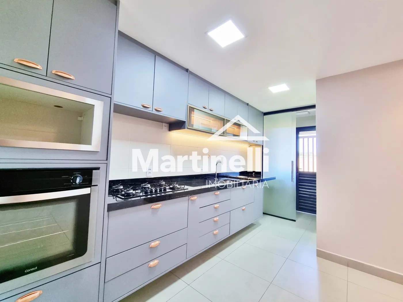 - Cozinha planejada com cooktop e forno