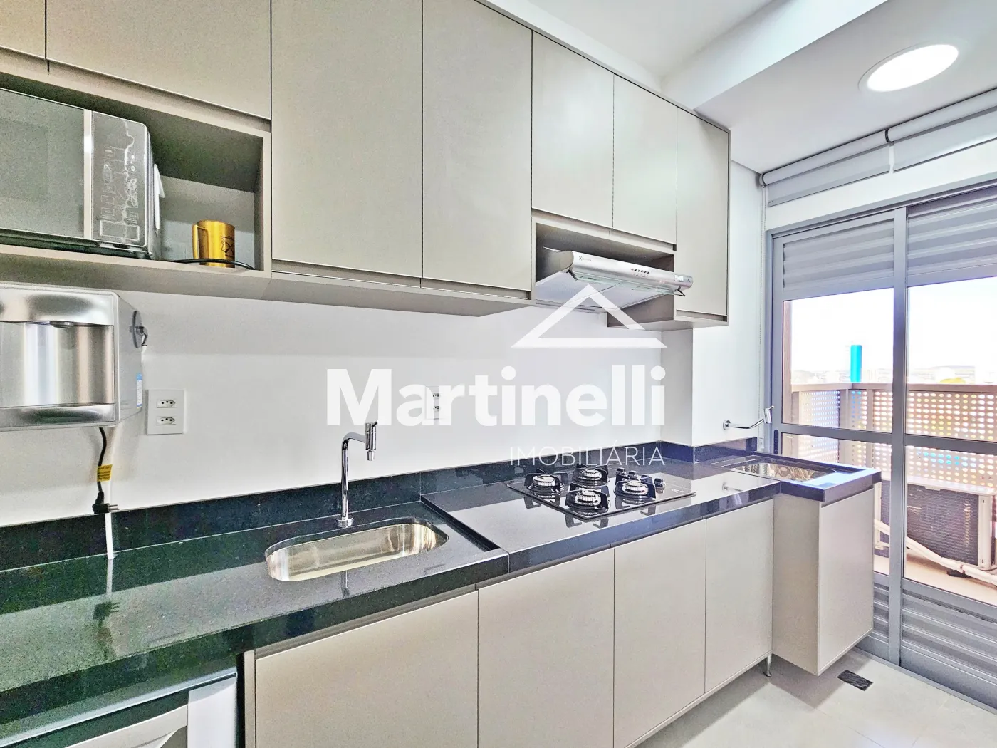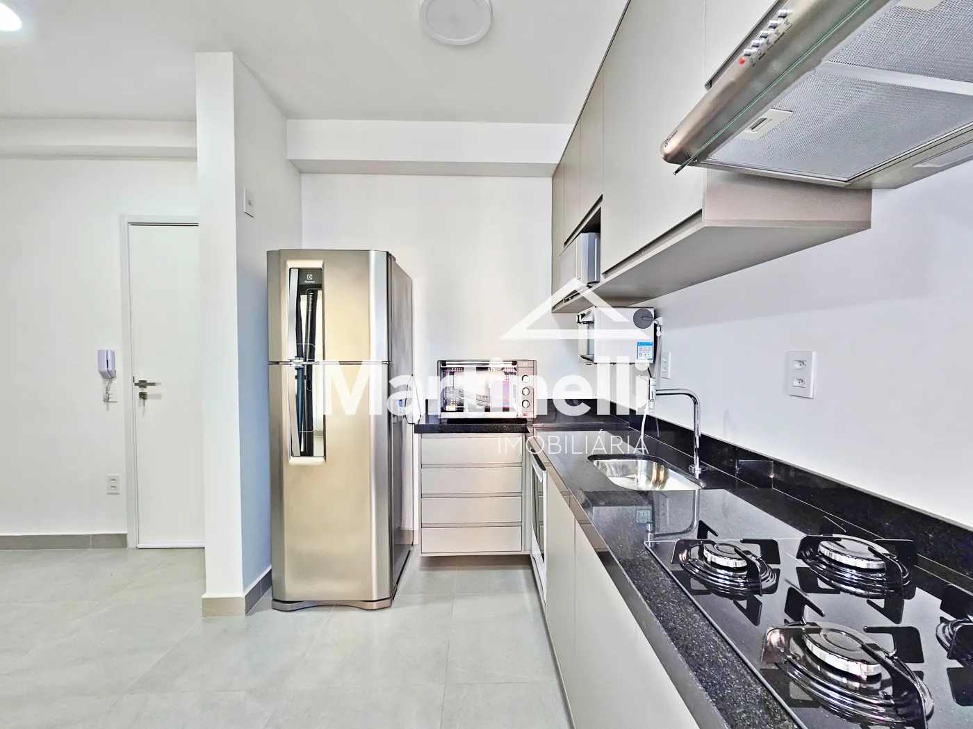 - Cozinha planejada com cooktop, forno e coifa