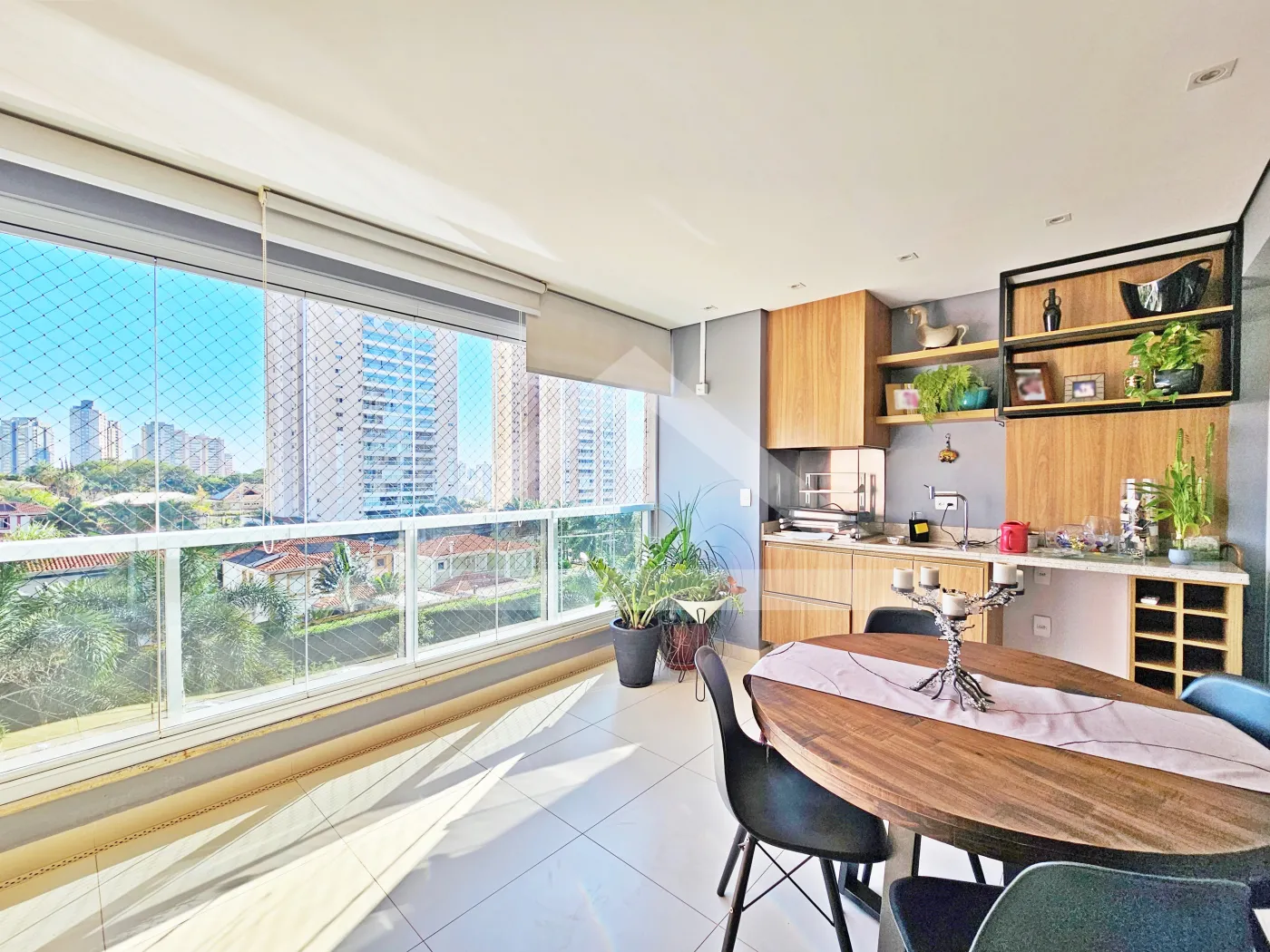 - Sacada gourmet com churrasqueira, ar-condicionado e fechada com vidro