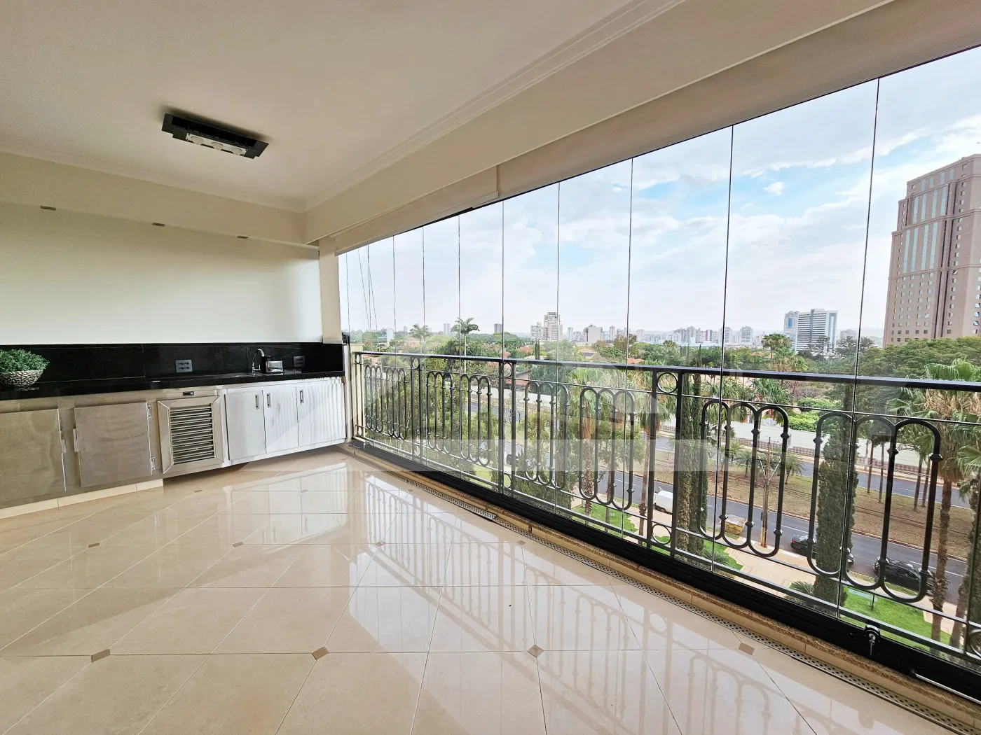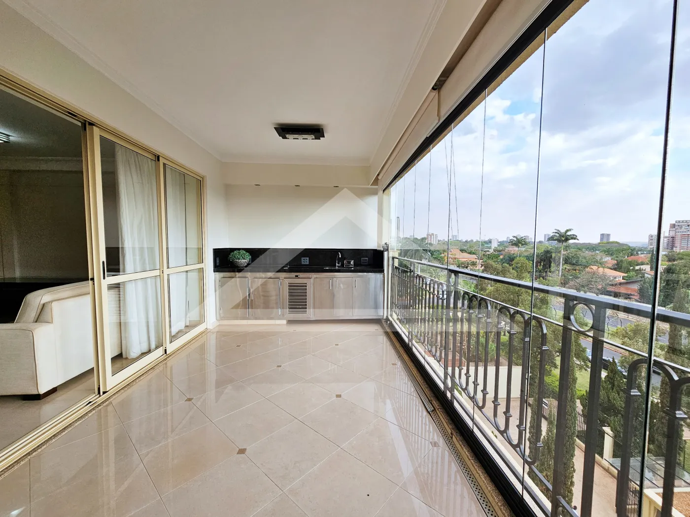 - Varanda gourmet com churrasqueira e fechamento em vidro