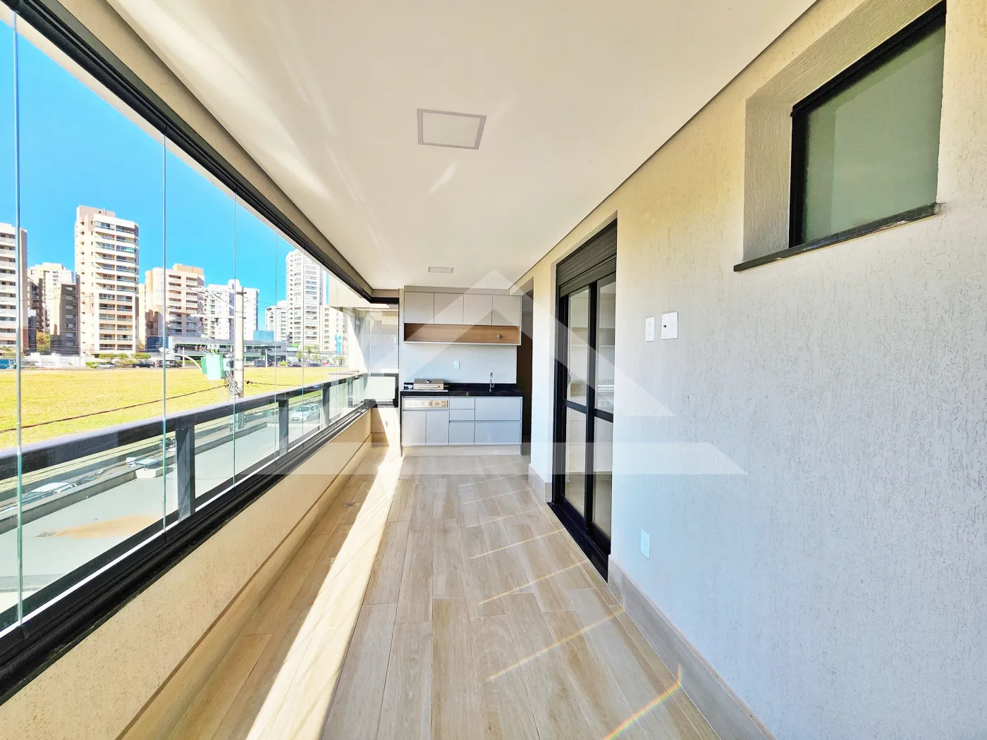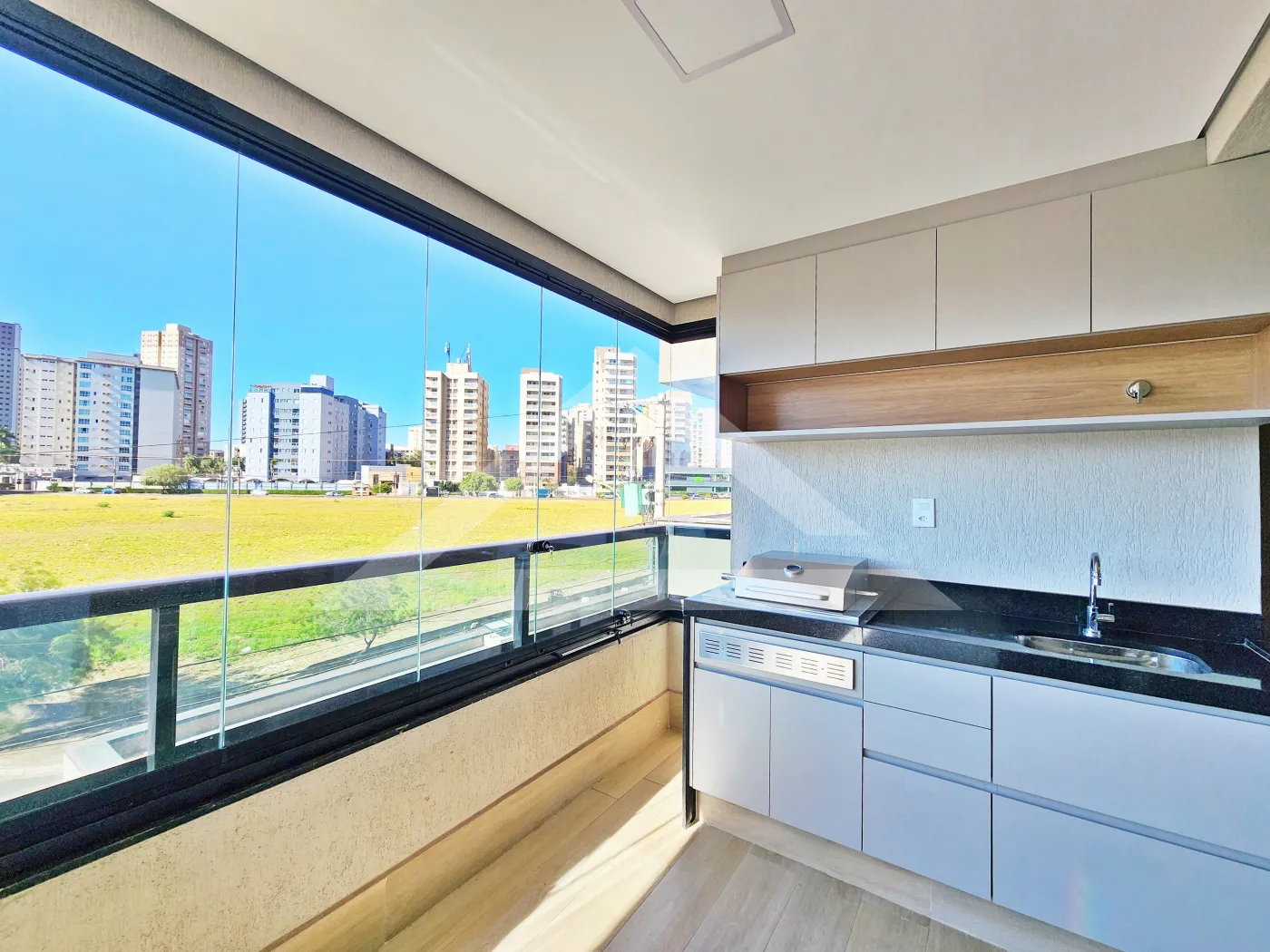 - Varanda gourmet com churrasqueira e fechada com blindex