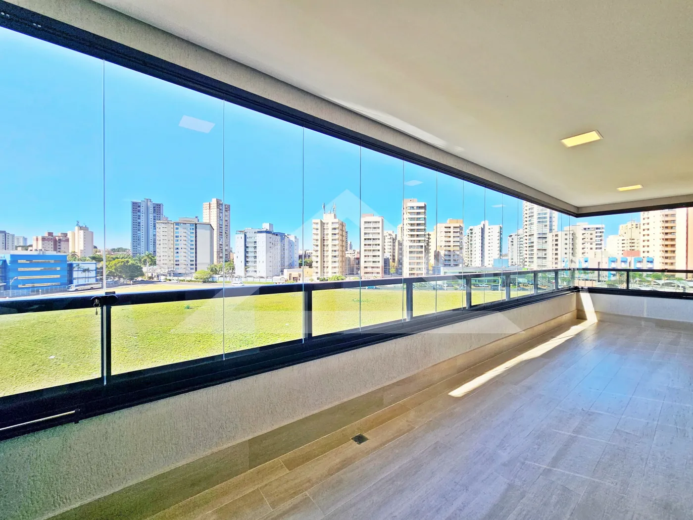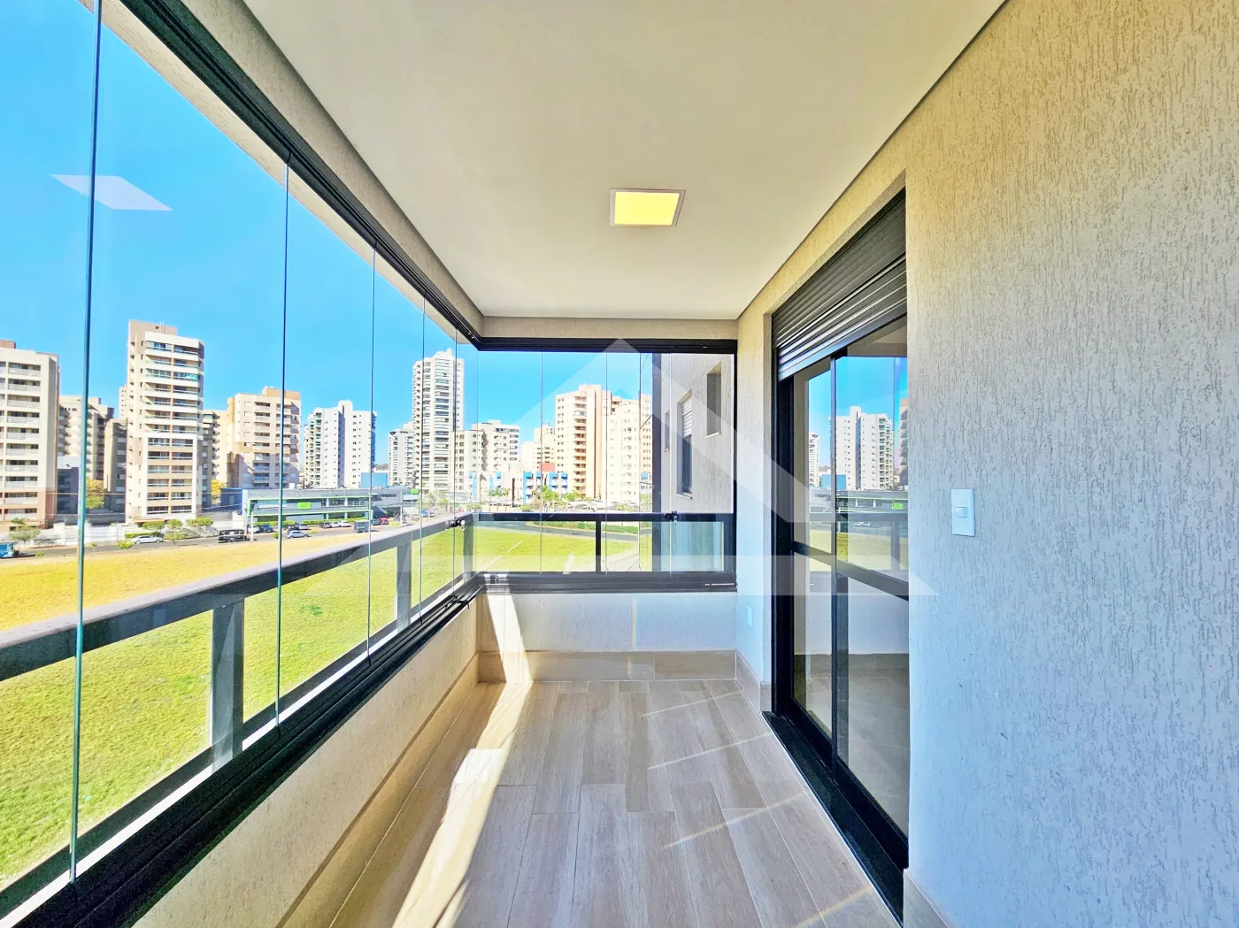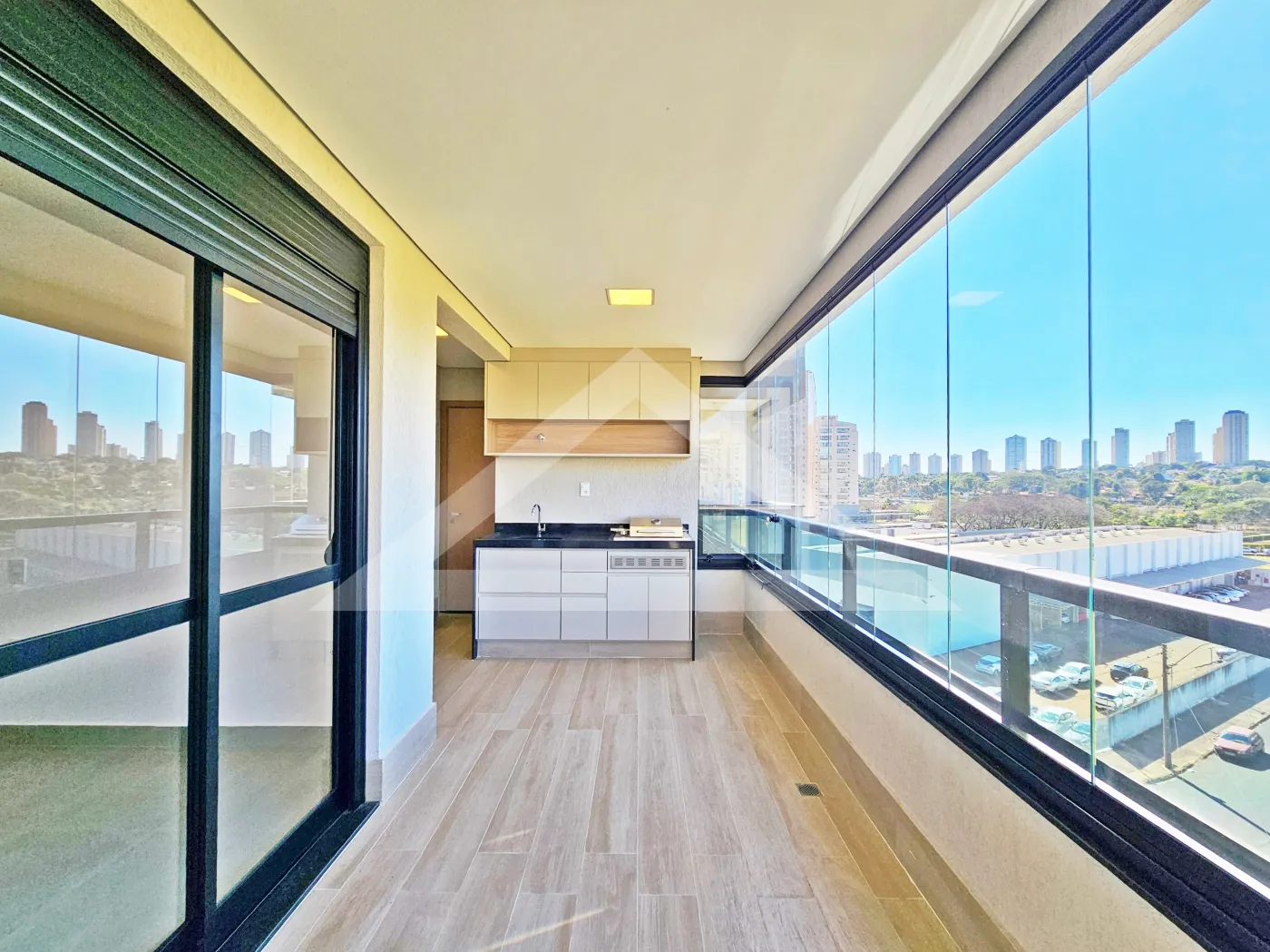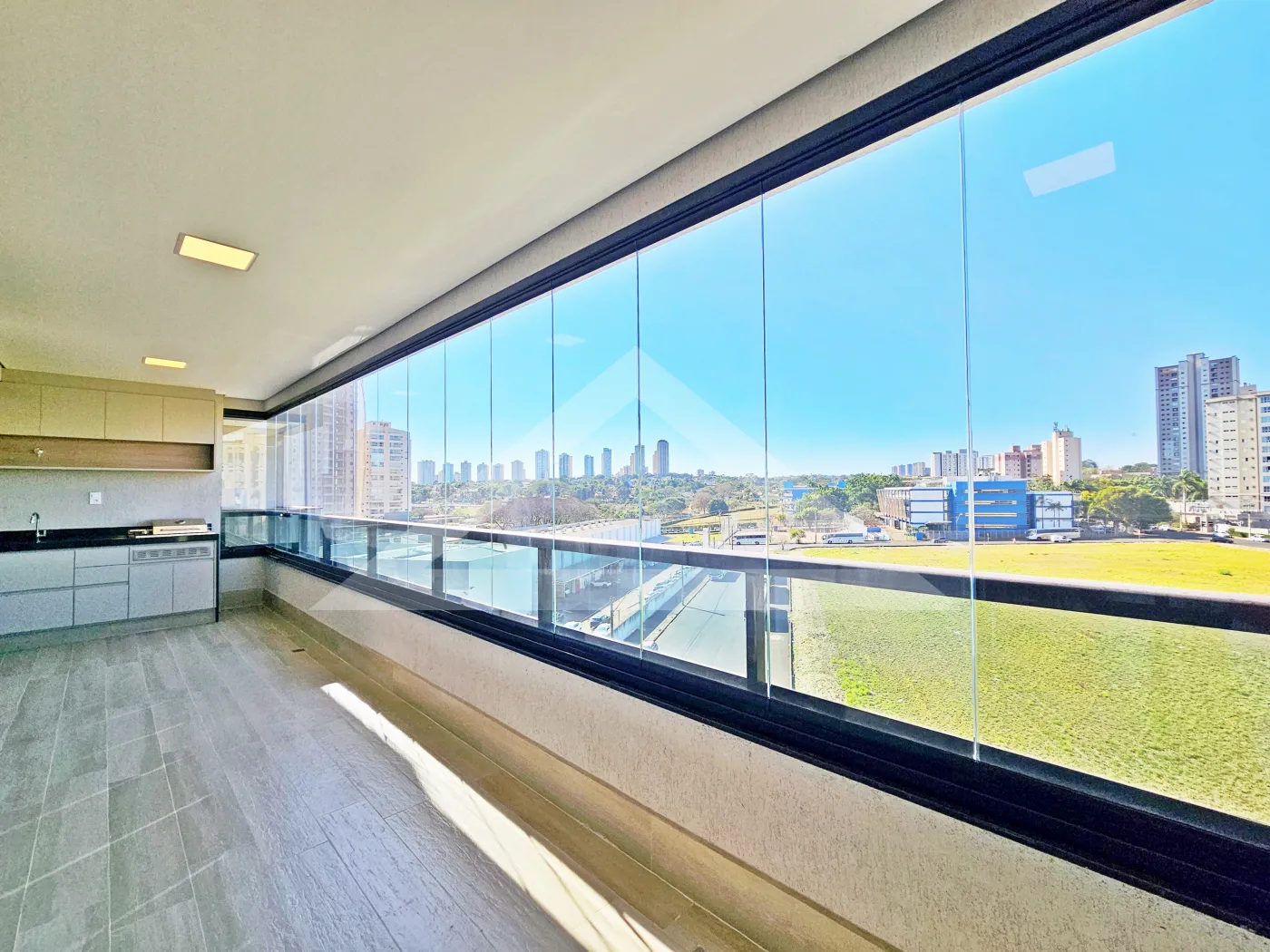 - Varanda gourmet com churrasqueira e fechada com blindex