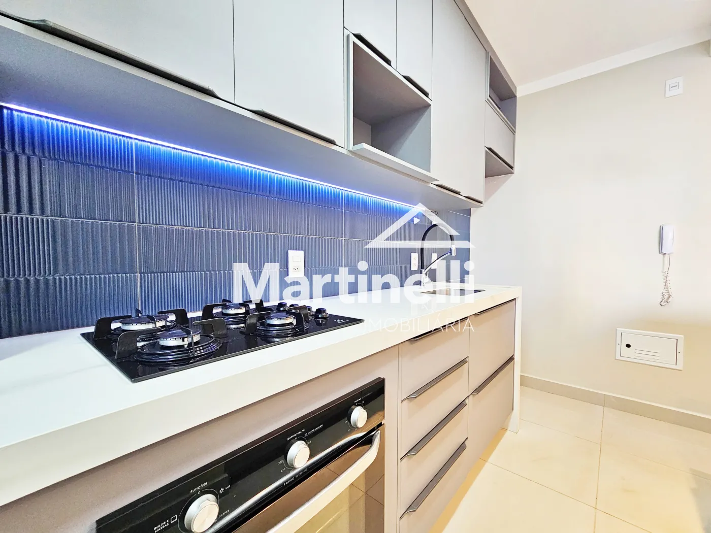 - Cozinha planejada com cooktop e forno