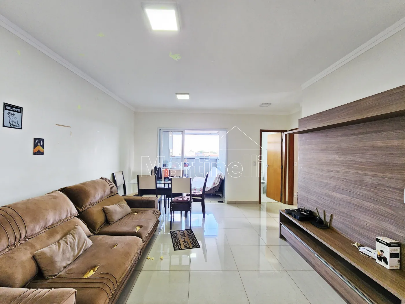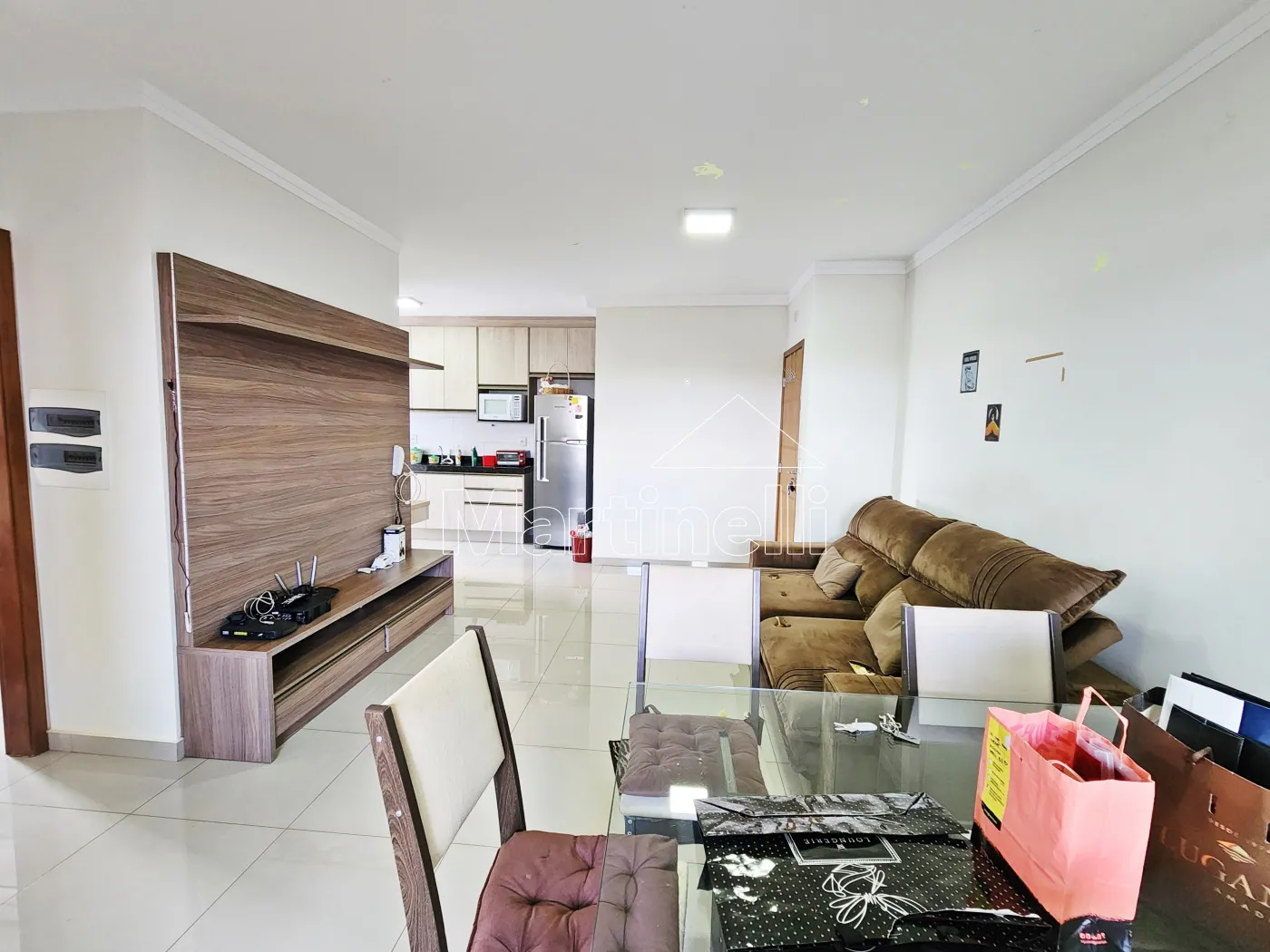 - Sala 2 ambientes com sofá, rack e mesa com 4 cadeiras