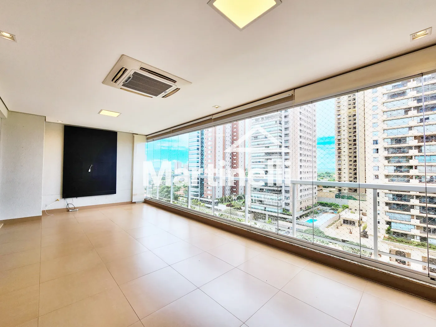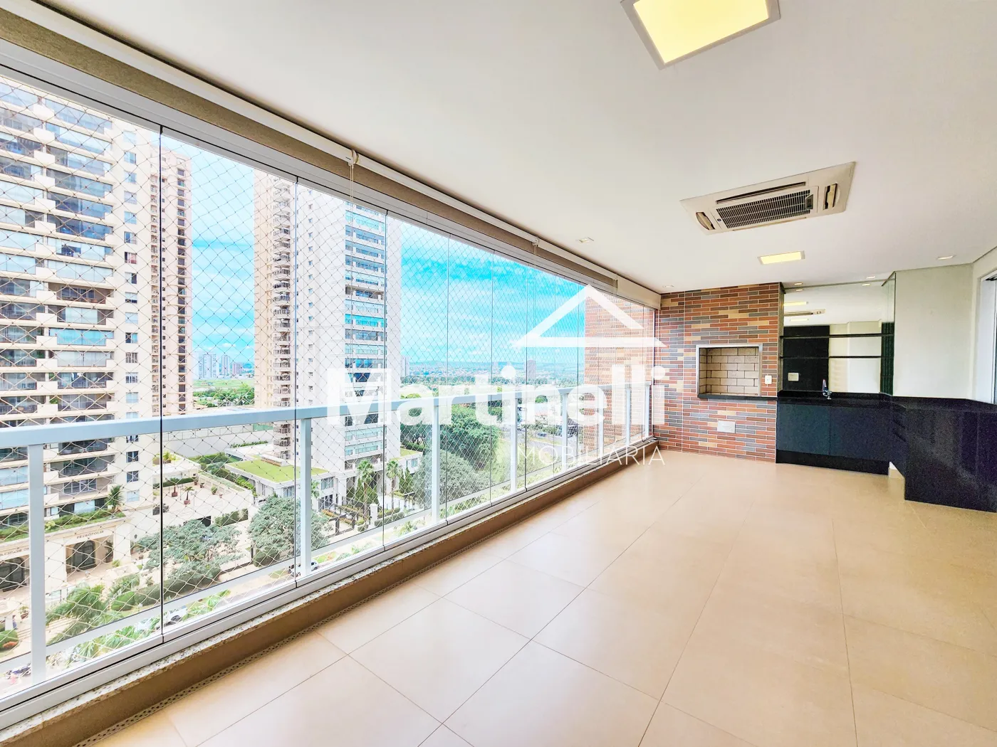 - Varanda gourmet com churrasqueira, ar-condicionado e fechamento em blindex