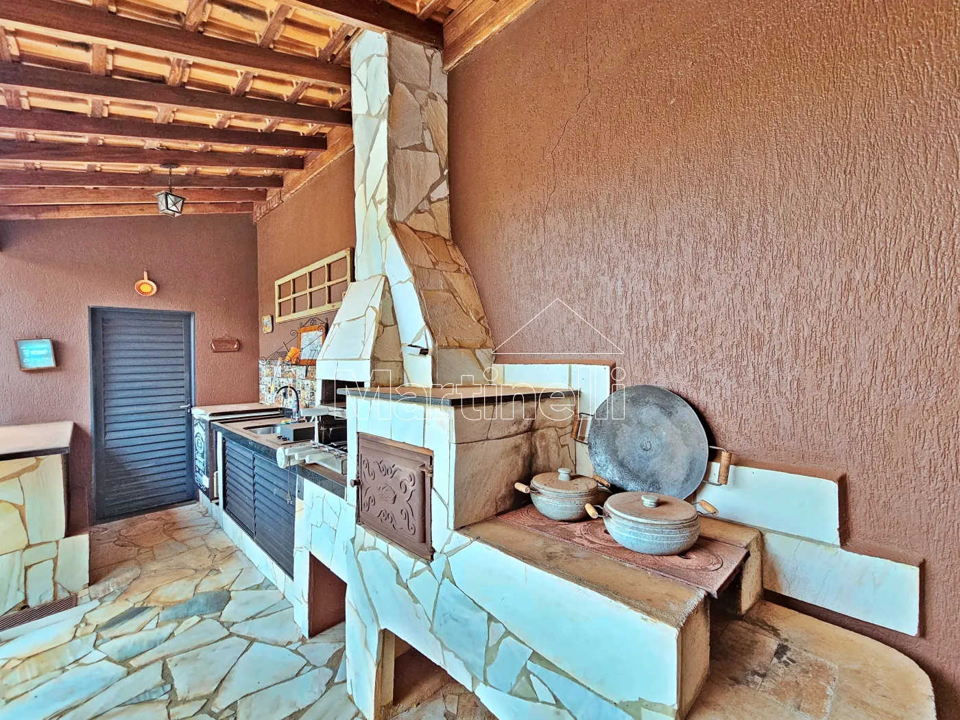 - Varanda gourmet com churrasqueira e fogão à lenha