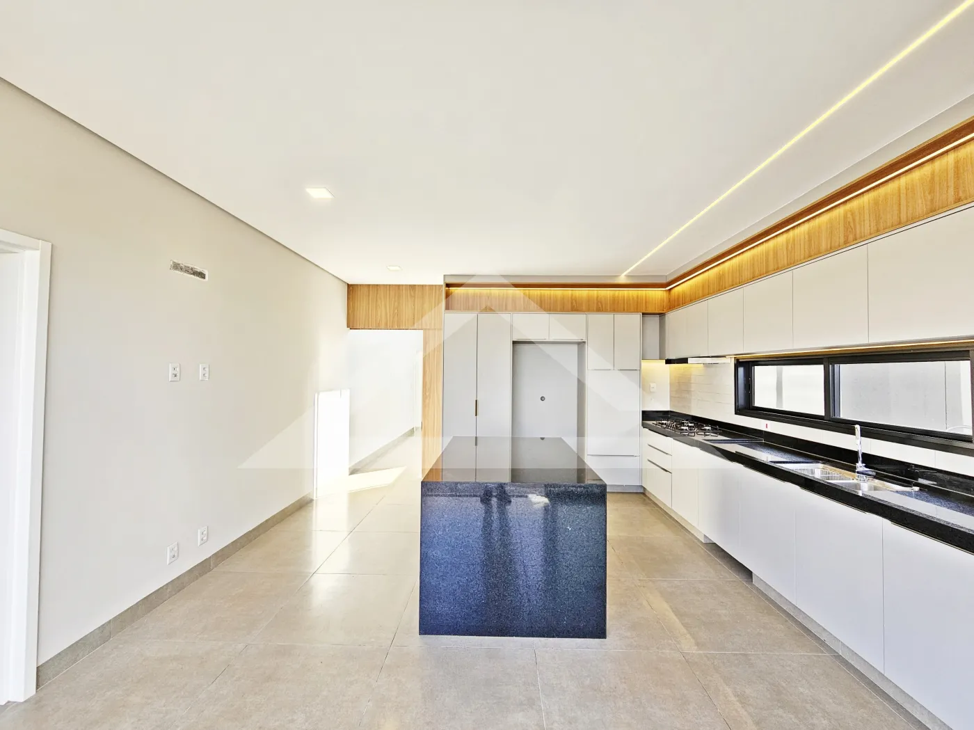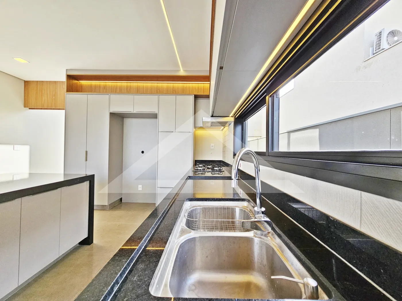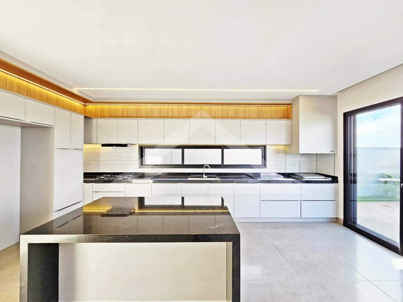 - Cozinha planejada com cooktop de indução, forno, micro-ondas e coifa