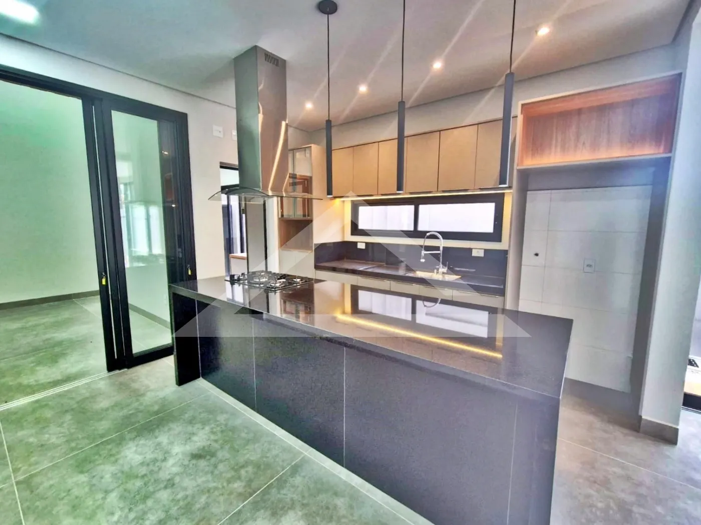 - Cozinha planejada com cooktop de indução, forno, micro-ondas e coifa