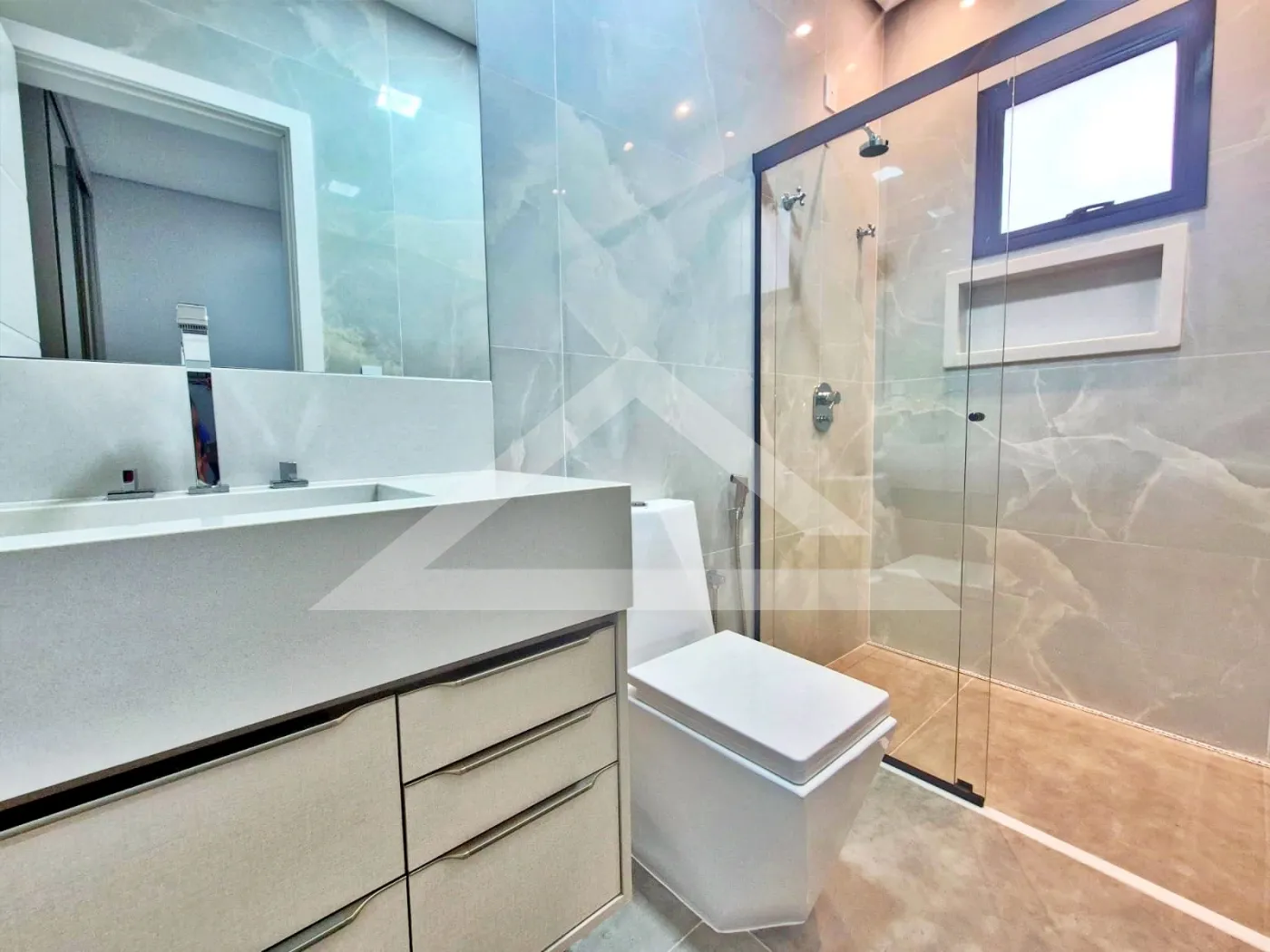 - 4 suítes com armários e ar-condicionado sendo e no térreo e 1 master com closet e hidro