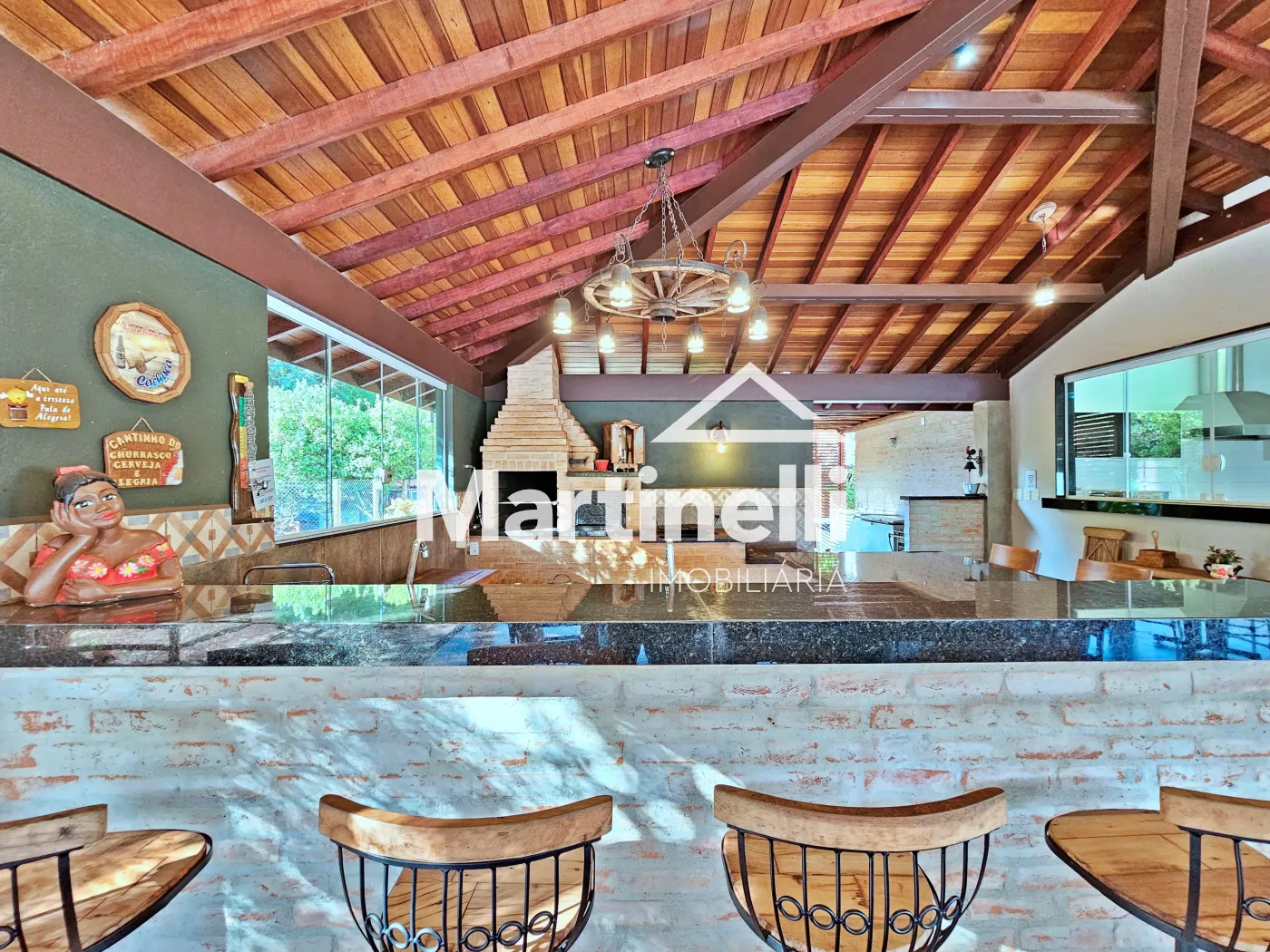 - Varanda gourmet com churrasqueira, forno de pizza e fogão à lenha